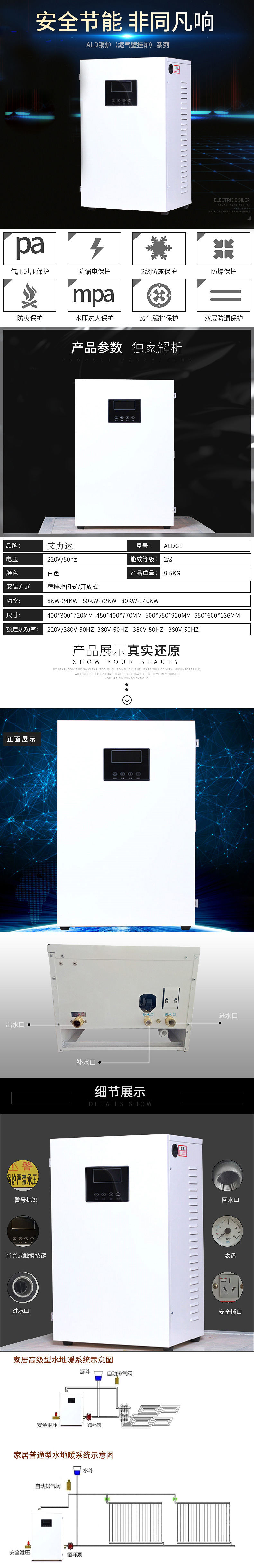 艾力達電鍋爐產品均裝有運行穩定的閥、壓力控制器等,以防止鍋爐因壓力過大而造成爆炸事故。
